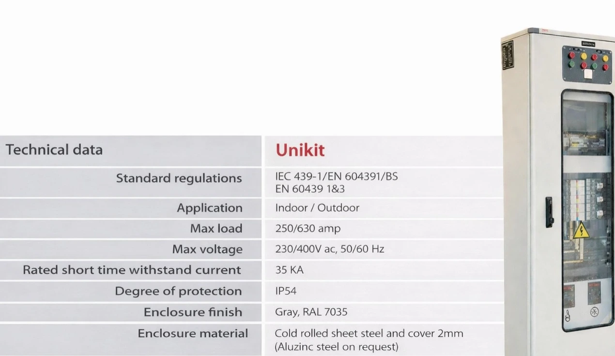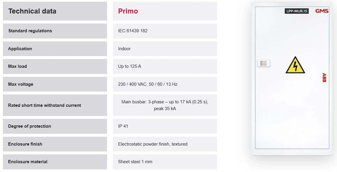 The Primo panel is designed in compliance with international IEC standards, ensuring safe and reliable performance for low-voltage electrical distribution applications.