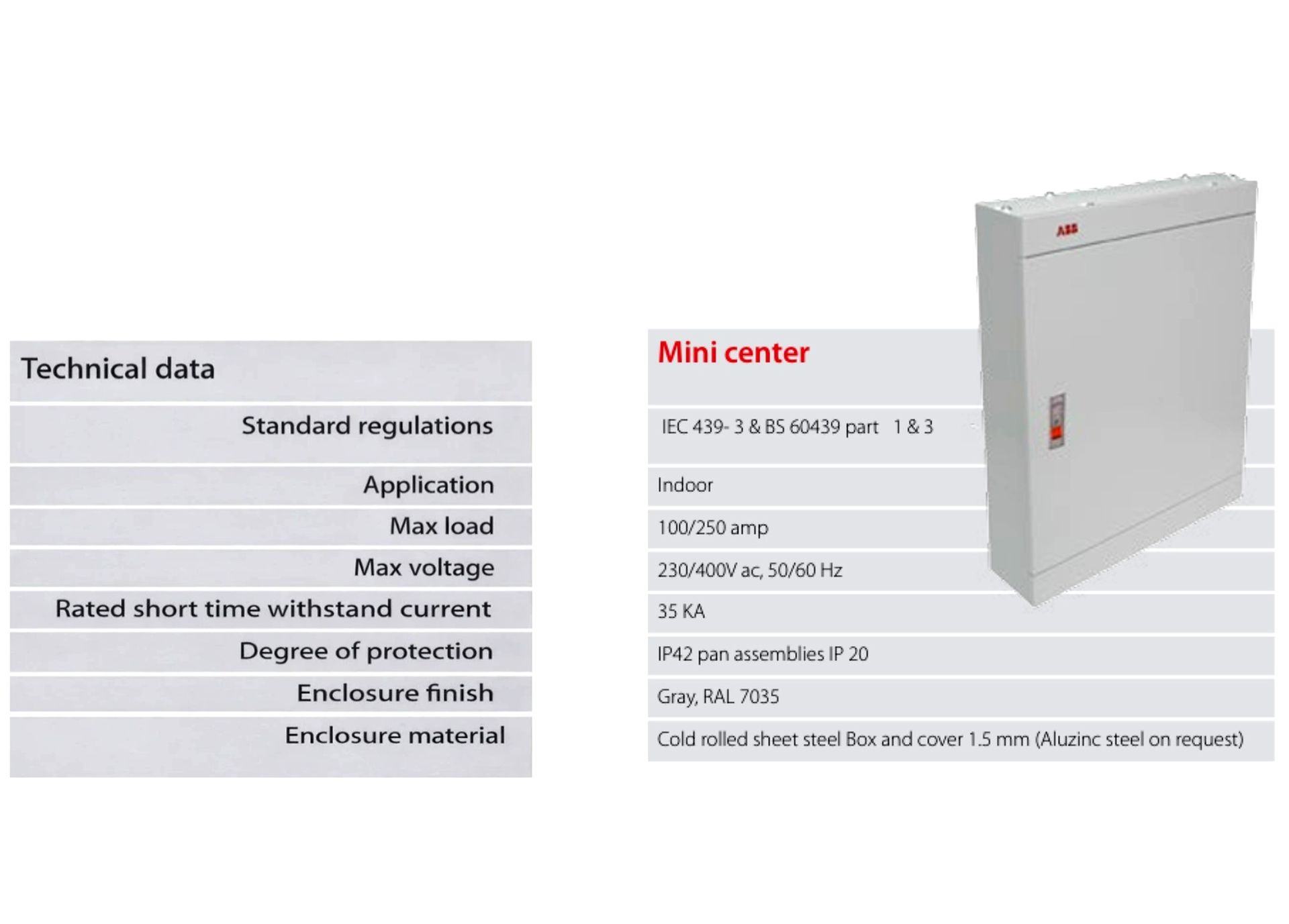 Indoor Application Mini Center compact distribution boards, a design aimed for safety, reliability and availability in the electrical building installation. Available in busbar and multi row types. Flush mounting only, (surface on request).
